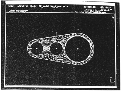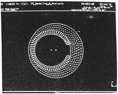 從上節(jié)介紹知,彈性體的柔度系數(shù)矩陣可以通過有限元法,加單位載荷來計(jì)算確定。因此,偏心套及內(nèi)齒行星傳動(dòng)齒板的柔度計(jì)算,實(shí)際上是對(duì)其進(jìn)行有限元建模分析。下面以SHQ40型三環(huán)傳動(dòng)為例,在SUN工作站上使用I-DEAS軟件中的有限元模塊計(jì)算偏心套及齒板的柔度系數(shù)。