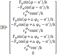 當(dāng)對(duì)兩相平行軸擺線(xiàn)針輪減速器求解時(shí),△φ2=180,第三塊環(huán)板因每輸出扭矩,其相應(yīng)的Fn=0;而對(duì)三相平行軸擺線(xiàn)針輪減速器,△φ2=120,△φ3=240。