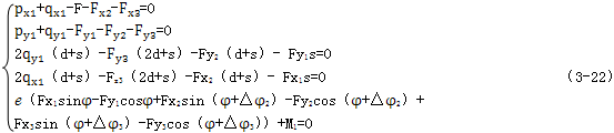 e(Ny1cosφ+Ny2cos(φ+△φ2)+Ny3cos(φ+△φ3)-Nx1sinφ-Nx2sin(φ+△φ2)-Nx3sin(φ+△φ3) (3-20)