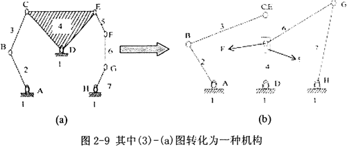(1)一般化,是指將具有機(jī)件和運(yùn)動(dòng)副的原始機(jī)械裝置,轉(zhuǎn)化為只有一般化連桿和一般化(運(yùn)動(dòng))副的機(jī)構(gòu),這樣形成的閉環(huán)鏈稱為一般化(運(yùn)動(dòng))鏈。
