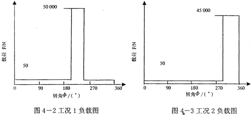 現(xiàn)假設(shè)有兩種運行工況,其負載分別如圖4-2、圖4-3所示。通過兩種具體沖壓載荷情況來分析柔性速度補償裝置的補償性能。