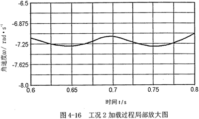 以上兩組數(shù)據(jù)分析表明,加載時(shí),經(jīng)柔性速度補(bǔ)償裝置速度補(bǔ)償后的速度輸出,在加載的時(shí)段,速度波動(dòng)明顯減小,具體數(shù)值可參看其局部放大圖,另外,阻力矩和電機(jī)的主動(dòng)力距和加柔性速度補(bǔ)償裝置前數(shù)值大小沒有明顯變化,表明對(duì)原機(jī)械系統(tǒng)的電機(jī)和其它動(dòng)力、強(qiáng)度等一些性能參數(shù)沒有大的影響。