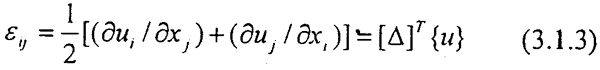 [△]為(3.1.3)中微分算子組成的矩陣,[B]為應變、位移關系矩陣,由總位能原理得: