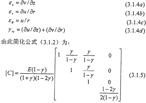 維變形狀態(tài)下,根據幾何關系、應變列陣為: