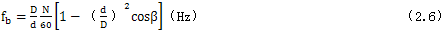2.軸承等傳動件產(chǎn)生的激勵(lì)頻率滾動軸承旋轉(zhuǎn)頻率為: