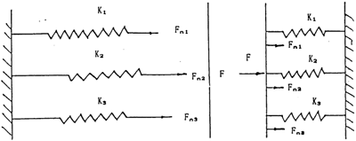 實(shí)際上,環(huán)板的受力與Fn(ф)有關(guān),因?yàn)槿龎K環(huán)板共同受載時(shí)彼此約束,構(gòu)成靜不定系統(tǒng),如簡化模型圖2-8所示。