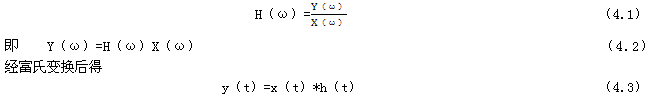 輸入函數(shù)是作用于振動系統(tǒng)的激勵信號;輸出函數(shù)y(t)是振動系統(tǒng)對激勵的響應(yīng)信號。由式(4.3)可知,系統(tǒng)的輸出函數(shù)y(t)等于輸入函數(shù)x(t)與函數(shù)h(t)的卷積,h(t)的作用相當(dāng)于給輸入函數(shù)加權(quán)處理,所以稱h(t)為系統(tǒng)的權(quán)函數(shù)。權(quán)函數(shù)是由系統(tǒng)的本身特性所決定,因此只要測量得到系統(tǒng)的激勵x(t)和響應(yīng)y(t),就可弄清楚系統(tǒng)的權(quán)函數(shù)h(t),從而也弄清了振動系統(tǒng)的特性。式(4.1)和式(4.2)是式(4.3)在頻域內(nèi)的計算公式,從上式中可以看出,在頻式范圍內(nèi),輸入與輸出之間只是簡單的乘積關(guān)系,更有利于分析。