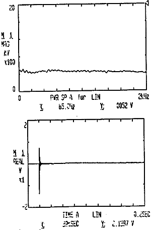 脈沖激勵信號的時域信號及自動功率譜密度函數(shù)如圖4-3所示。脈沖響應(yīng)信號的時域波形及自功率譜密度函數(shù)如圖4-4所示,從圖中可以看出脈沖激勵信號和脈沖響應(yīng)信號均較為理想。