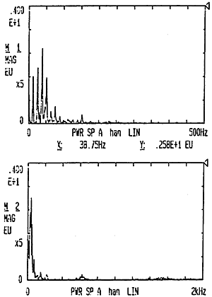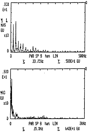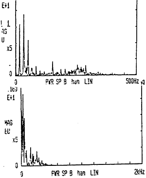如圖6-14、圖6-15、圖6-16、圖6-17、圖6-18、圖6-19及圖6-20示,圖中示出了各種工況下,頻率范圍為0~500HZ和0~2KHZ速度自功率譜密度函數(shù)的對(duì)比,從圖中可以看出,速度自功率譜密度函數(shù)值主要集中在500HZ頻率范圍內(nèi),這樣,我們以0~500HZ的范圍來計(jì)算均方根速度的精度是足夠的。根據(jù)CF-355內(nèi)部設(shè)置知時(shí)間
