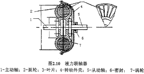 液力聯(lián)軸器中,充有工作油。當(dāng)原動(dòng)機(jī)通過(guò)主動(dòng)軸帶動(dòng)泵輪旋轉(zhuǎn)時(shí),因離心力的作用,工作油在葉片的帶動(dòng)下由內(nèi)側(cè)(進(jìn)口)流向外緣(出口),形成高壓高速的液流,高壓高速的液流沖擊渦輪葉片,使渦輪跟著泵輪同向旋轉(zhuǎn)。工作油在渦輪中,由外緣(進(jìn)口)流向(內(nèi)側(cè))出口的過(guò)程中減壓減速,然后再流入泵輪的進(jìn)口。不斷地循環(huán),把工作油的動(dòng)能和壓力能換成機(jī)械功,通過(guò)從動(dòng)軸輸出,帶動(dòng)工作機(jī)器。整個(gè)過(guò)程實(shí)現(xiàn)了從主動(dòng)軸到從動(dòng)軸的傳動(dòng)。