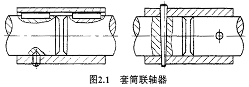 套筒聯(lián)軸器結(jié)構(gòu)如圖2.1所示,由一整套公用套筒并利用鍵,花鍵或錐銷(xiāo)等聯(lián)接件實(shí)現(xiàn)與兩軸的聯(lián)接。