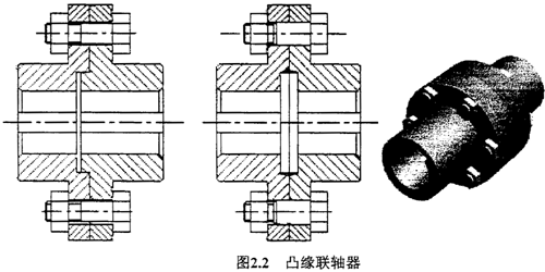 如圖2.2所示,凸緣聯(lián)軸器由兩個(gè)帶凸緣的半聯(lián)軸器和一組螺栓組成。這種聯(lián)軸器有兩種對(duì)中方式:一種是通過(guò)分別具有凸槽和凹槽的兩個(gè)半聯(lián)軸器的相互嵌合來(lái)對(duì)中,半聯(lián)軸器采用普通螺栓聯(lián)接;另一種是通過(guò)鉸制孔用螺栓與孔的緊配合對(duì)中,當(dāng)尺寸相同時(shí)后者傳遞的轉(zhuǎn)矩較大,且裝拆時(shí)軸不必作軸向移動(dòng)。