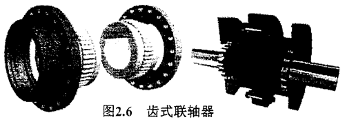 齒式聯(lián)軸器構(gòu)造如圖2.6所示,主要由兩具有相同齒數(shù)的外齒軸套和兩帶有凸緣的內(nèi)齒圈等零件組成。兩外齒軸套分別用鍵聯(lián)接固定在被聯(lián)接兩軸的軸端,兩內(nèi)齒圈的內(nèi)齒與軸套上的外齒相嚙合,其凸緣用螺栓聯(lián)接,從而實(shí)現(xiàn)兩軸的聯(lián)接。