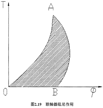 聯軸器的阻尼作用如圖2.19所示,聯軸器在工作過程中,加載和卸載的特性線不重合,所包圍的面積,OAB就代表阻尼所消耗的能量。