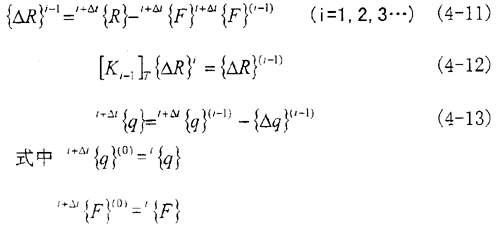 上述方程是根據有限元系統的響應線性化得到的,每一次迭代都是用式(4-11)算小平衡的載荷向量,由這些載荷向量從式(4-10)中導出位移向量,然后繼續(xù)迭代直至不平衡線荷同量{ΔR}(i-1)或位移向量qi足夠小為止。