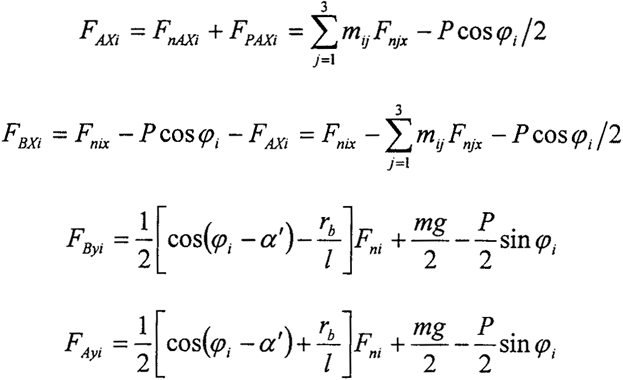 將FnBxi=-FnAxi+Fnxi代入式(2-21)~(2-23)中,求解得: