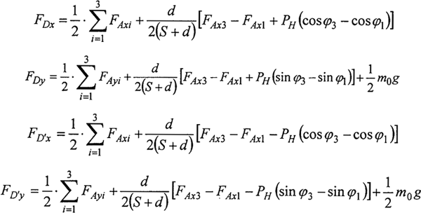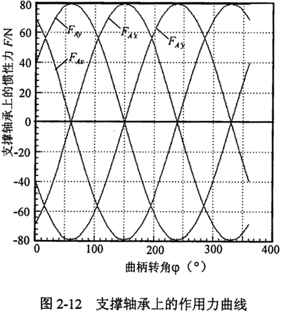 2.曲柄軸支撐軸承的作用力分析 根據(jù)力學(xué)原理,對(duì)于輸入同可得到下列方程式: