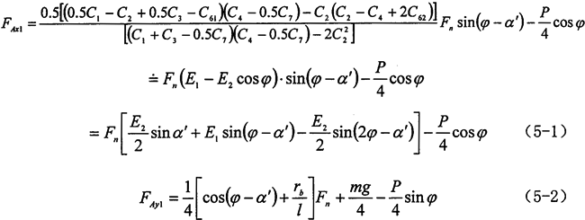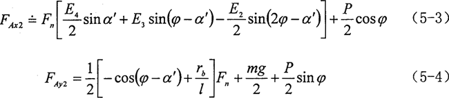 實際上,減速器的振動主要表現(xiàn)為偏心軸支撐軸承的振動,其振動的主要激振力便是轉(zhuǎn)臂軸承處的油膜作用力和偏心軸的慣性力和慣性力,偏心軸的慣性力和慣性力矩對支撐的作用力為零,由第二章受力分析知,雙軸輸入式三環(huán)減速器支撐軸承所受的x方向激振力為: