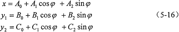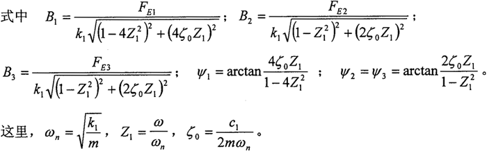 x=B1·sin(2ωt-α′+ψ1)+B2·sin(ωt-α′+ψ2)+B3·sin(ωt-π/2+ψ3) (5-7)