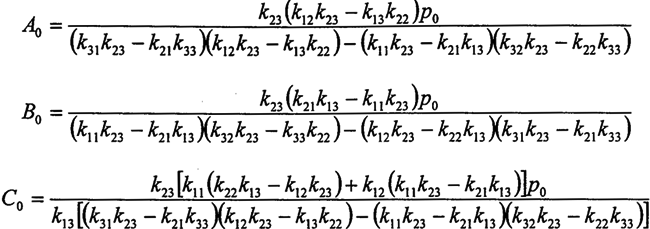 A1k31+A2c31ω+B1(k32-m32ω2)+B2c32ω+C1(k33-m33ω2)+C2c33ω=0