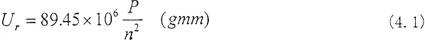 式中n為轉(zhuǎn)子的最大工作轉(zhuǎn)速(rpm),P為軸頸靜載荷(Kg)。