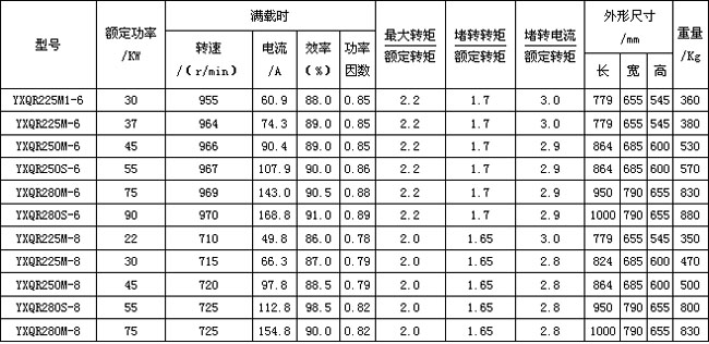 YXQR系列電動(dòng)機(jī)外殼防護(hù)等級(jí)為IP23。電動(dòng)機(jī)為臥式安裝,借底腳安裝在基礎(chǔ)件上。電動(dòng)機(jī)的轉(zhuǎn)子自成回路,無(wú)集電環(huán)、電刷,不需要任何起動(dòng)設(shè)備,但卻具有比傳統(tǒng)繞線式電動(dòng)機(jī)更加優(yōu)越的起動(dòng)性能。