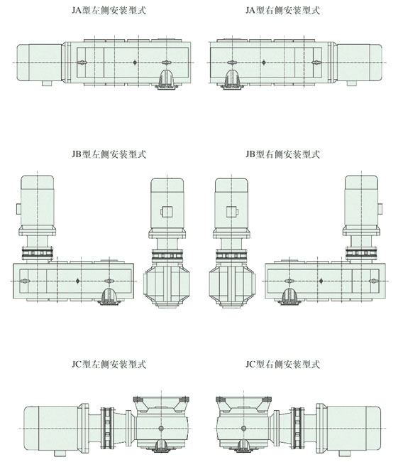 1、型號有: JA—蝸輪蝸桿圓柱齒輪直輸出;