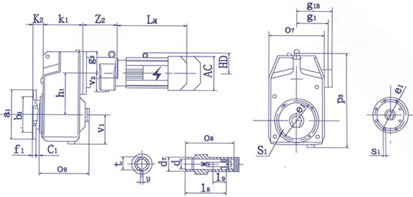 注:電動機(jī)有關(guān)尺寸見電機(jī)尺寸表