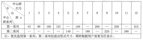 2.1 減速器型號(hào)用中心距表示,中心距及其代號(hào)見(jiàn)表1。