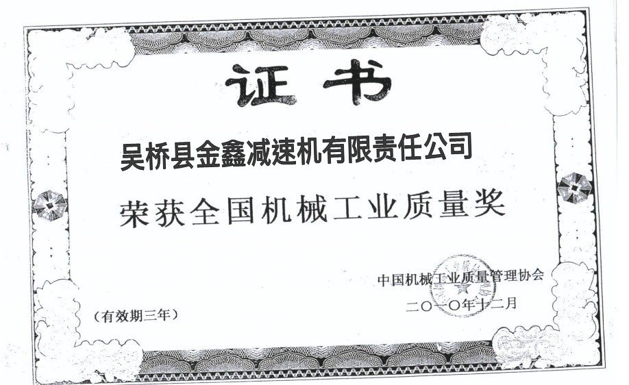 機(jī)械行業(yè)質(zhì)量獎(jiǎng)