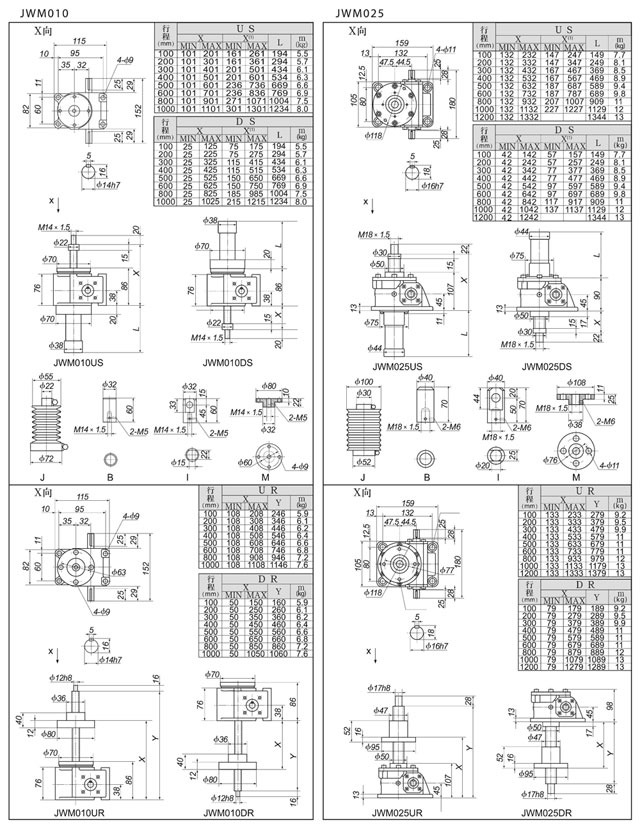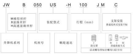 9、JWM型理論上具有自鎖性能,但工作在振動沖擊較大的場合時會導(dǎo)致自鎖功能失靈,因此須外加一制動裝置或選擇帶有制動的驅(qū)動源。