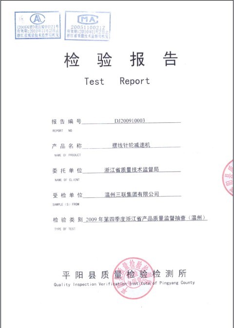 >>溫州聯(lián)博機械有限公司擺線輪檢測報告1檢測報告