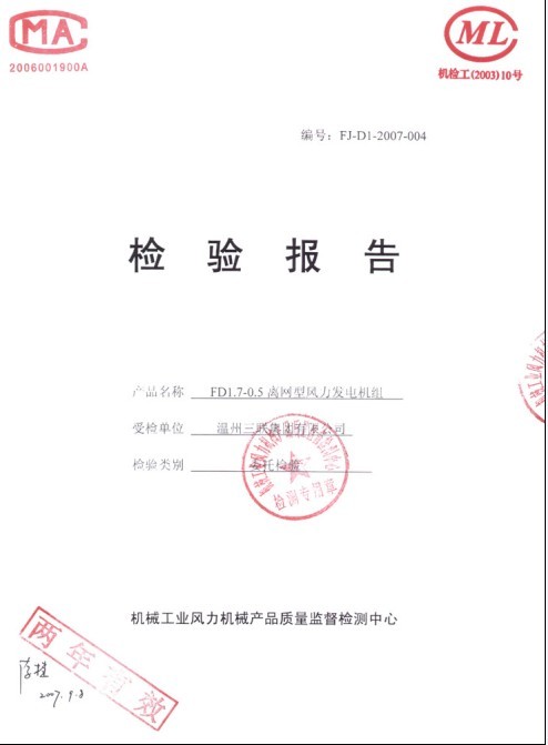 機(jī)械工業(yè)風(fēng)力機(jī)械產(chǎn)品質(zhì)量監(jiān)督檢測(cè)中心